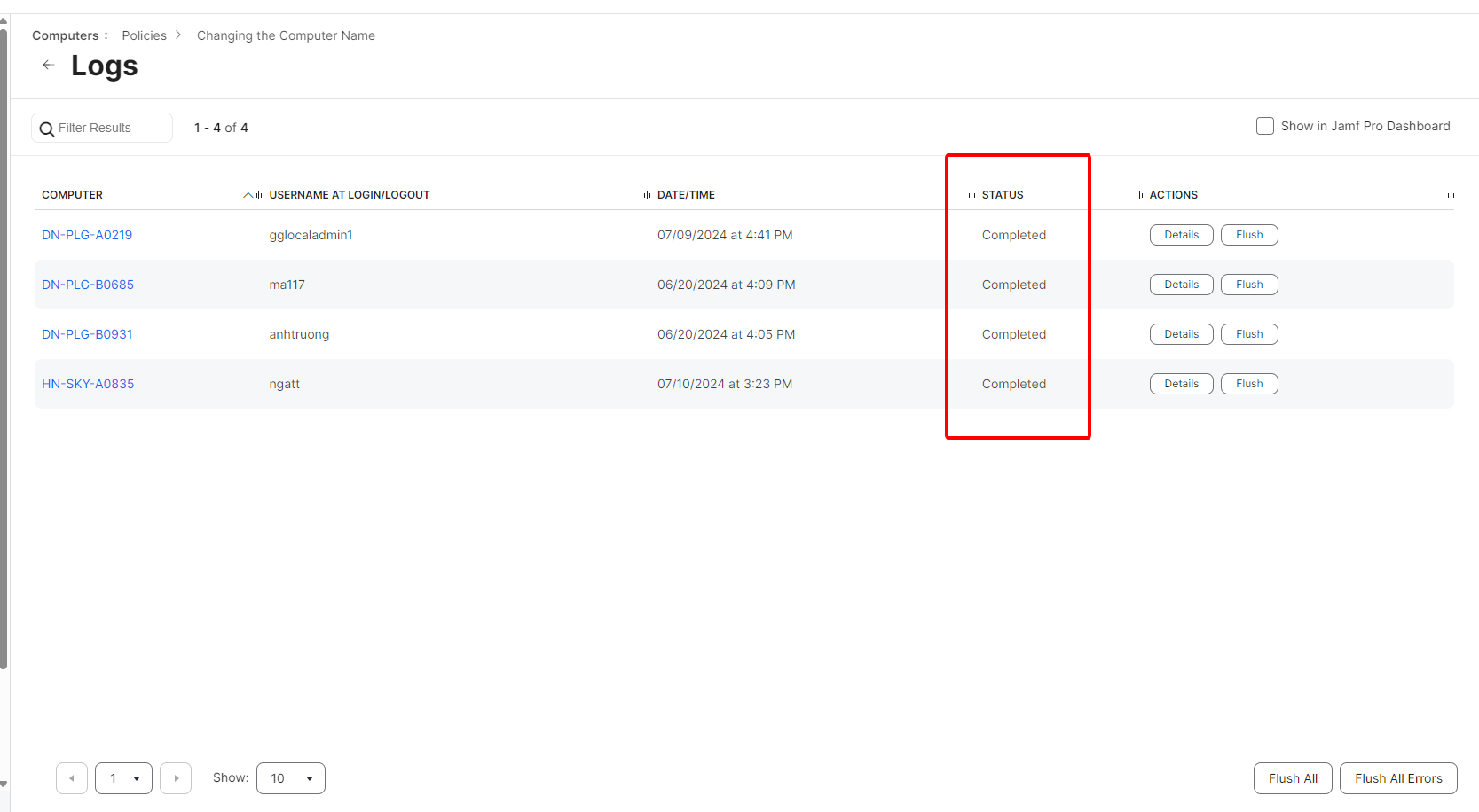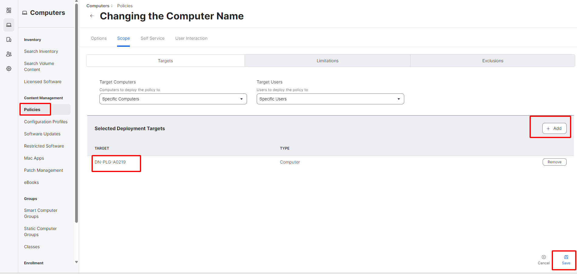 Check the result and remove the device from the Policy after completion (or leave the device in the Policy to prevent users from changing the Computer Name according to their preferences).