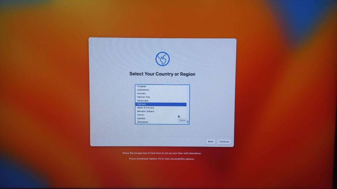 The computer will restart and erase all previous settings and return to the initial setup state. Here you need to note that only setup to the language and region selection.