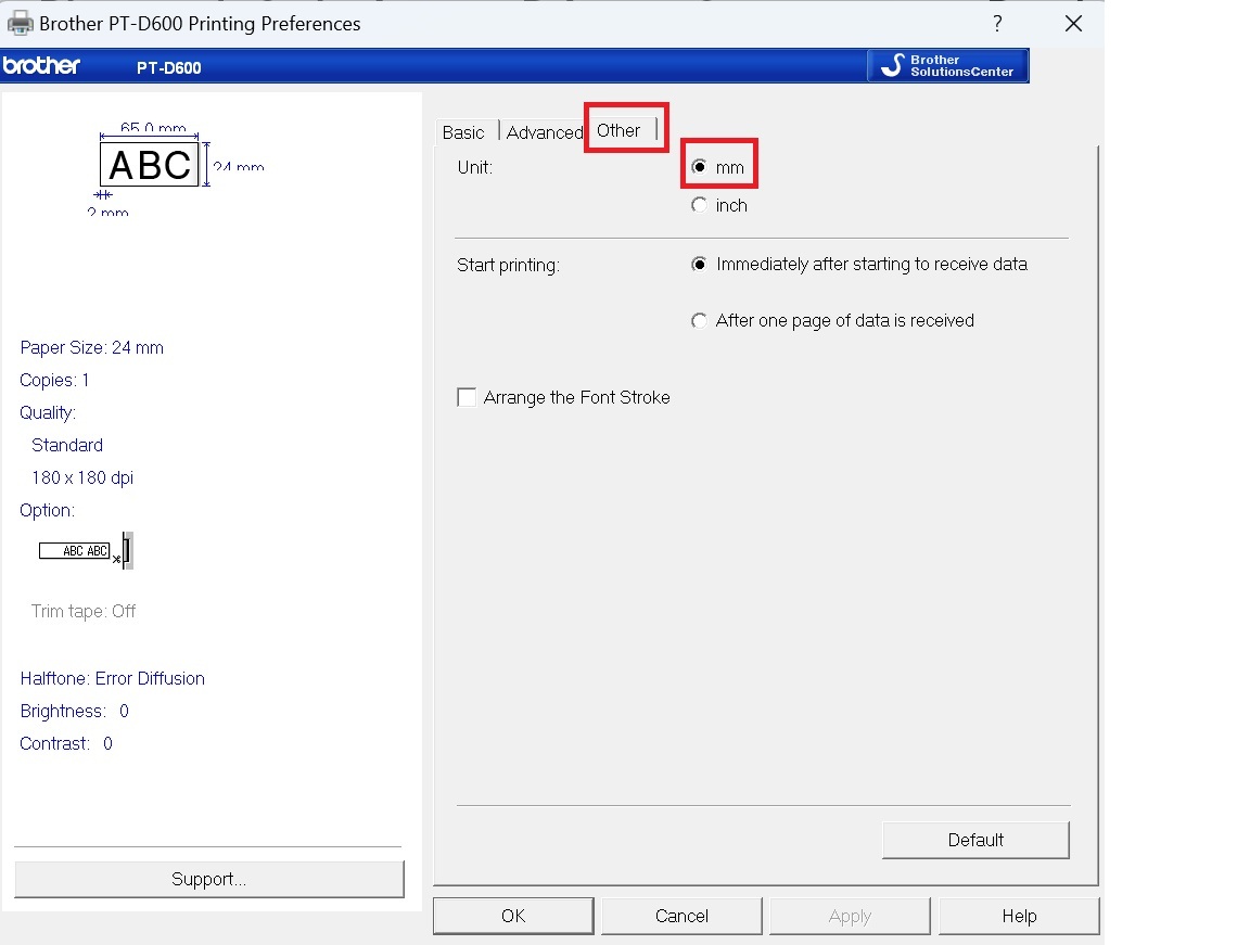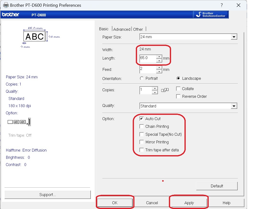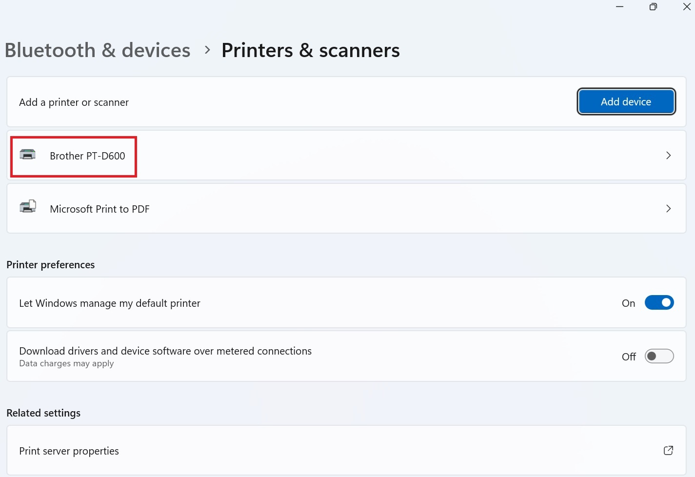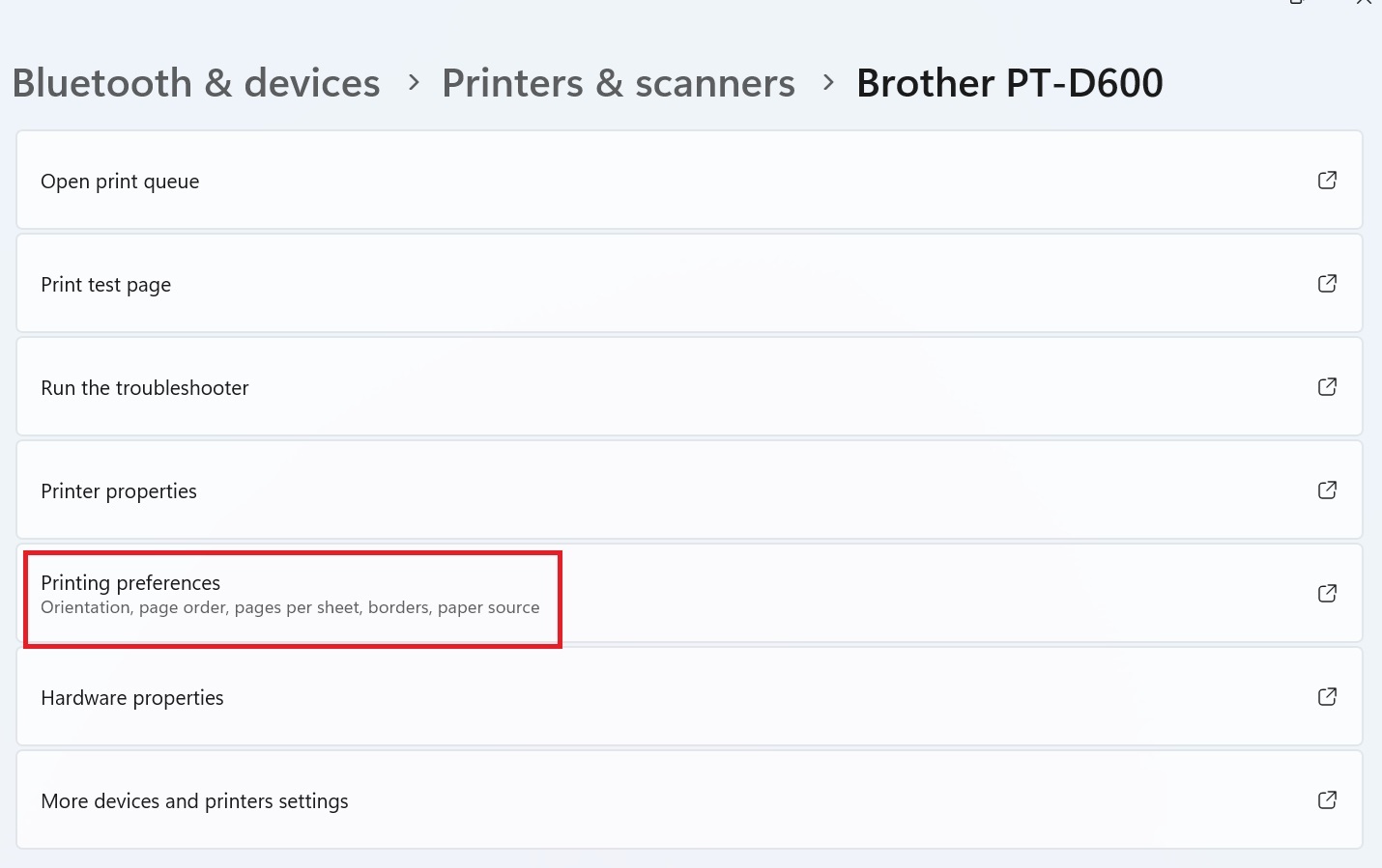 Ctrl + Pto open the print dialog. Ensure the following settings are correct before printing:- Destination: PT-D600
